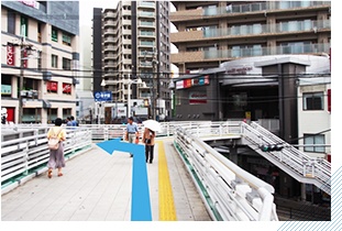 南改札口を出て左側に見える、mini-miniの看板の方に向かって