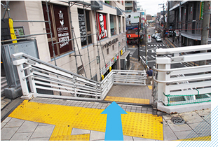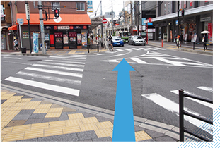 進んだ先の階段を降り、まっすぐ交差点に向かって進みます。 -